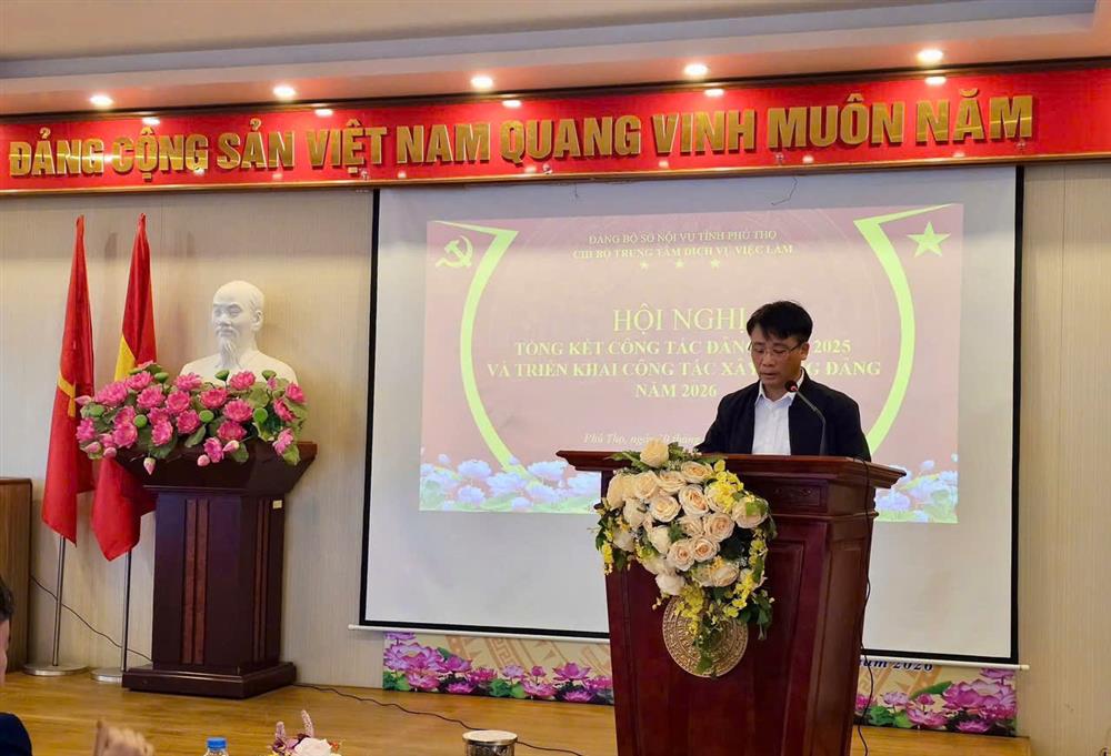 Hội nghị tổng kết công tác Đảng năm 2025, triển khai nhiệm vụ năm 2026 và Lễ kết nạp Đảng viên của Chi bộ Trung tâm Dịch vụ việc làm Phú Thọ đã diễn ra thành công tốt đẹp. Đây là dịp quan trọng để Chi bộ nhìn lại kết quả đã đạt được, xác định phương hướng trong thời gian tới, đồng thời khẳng định vai trò hạt nhân chính trị, lãnh đạo đơn vị hoàn thành tốt các nhiệm vụ được giao.
