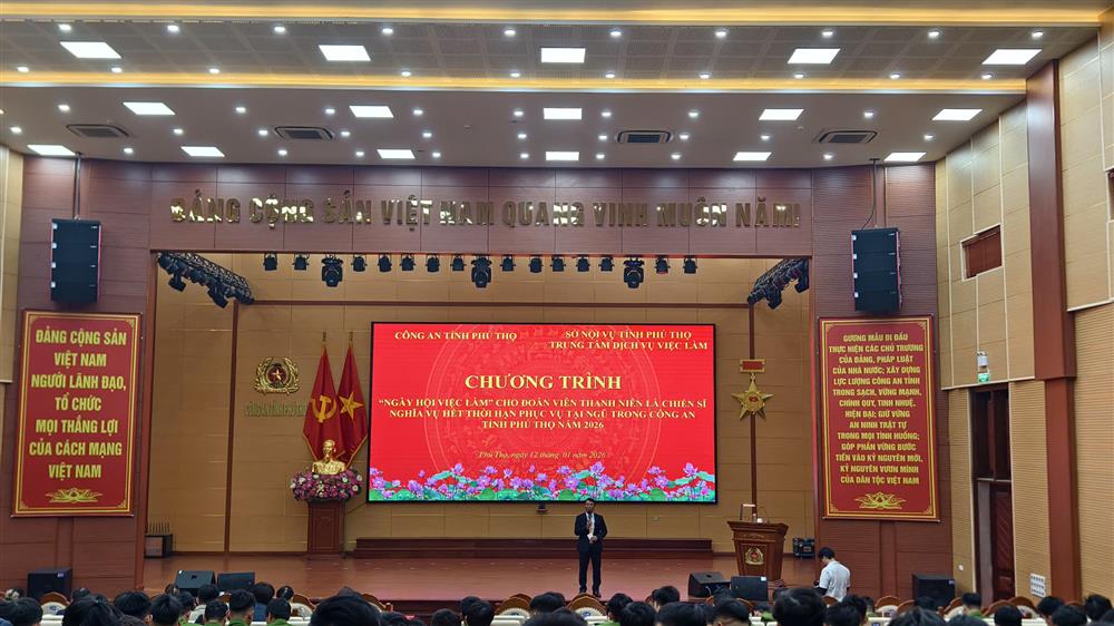 Chiều ngày 12/1, Công an tỉnh Phú Thọ phối hợp với Sở Nội vụ - Trung tâm Dịch vụ việc làm Phú Thọ tổ chức Ngày hội việc làm cho đoàn viên, thanh niên là hạ sĩ quan, chiến sĩ nghĩa vụ hết thời hạn phục vụ tại ngũ trong Công an tỉnh Phú Thọ năm 2026.
